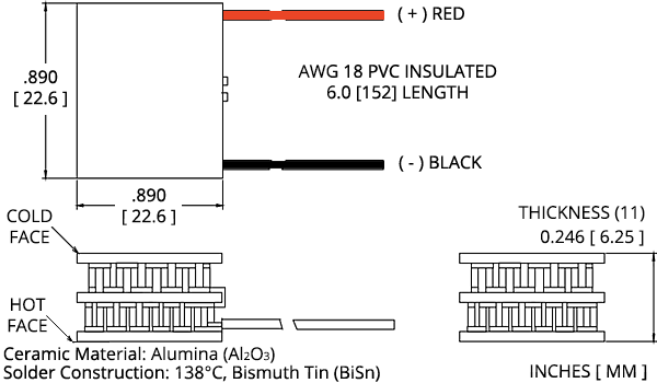 For maximum performance, be sure to orient the CONTROL side of the TEC against the application to be managed and the AMBIENT side against the heat sink or other heat rejection method. The CONTROL side is always opposite the side with lead attachments. Lead attachment is a passive heat loss and less impactful if located on the side that attaches to the heat exchanger.