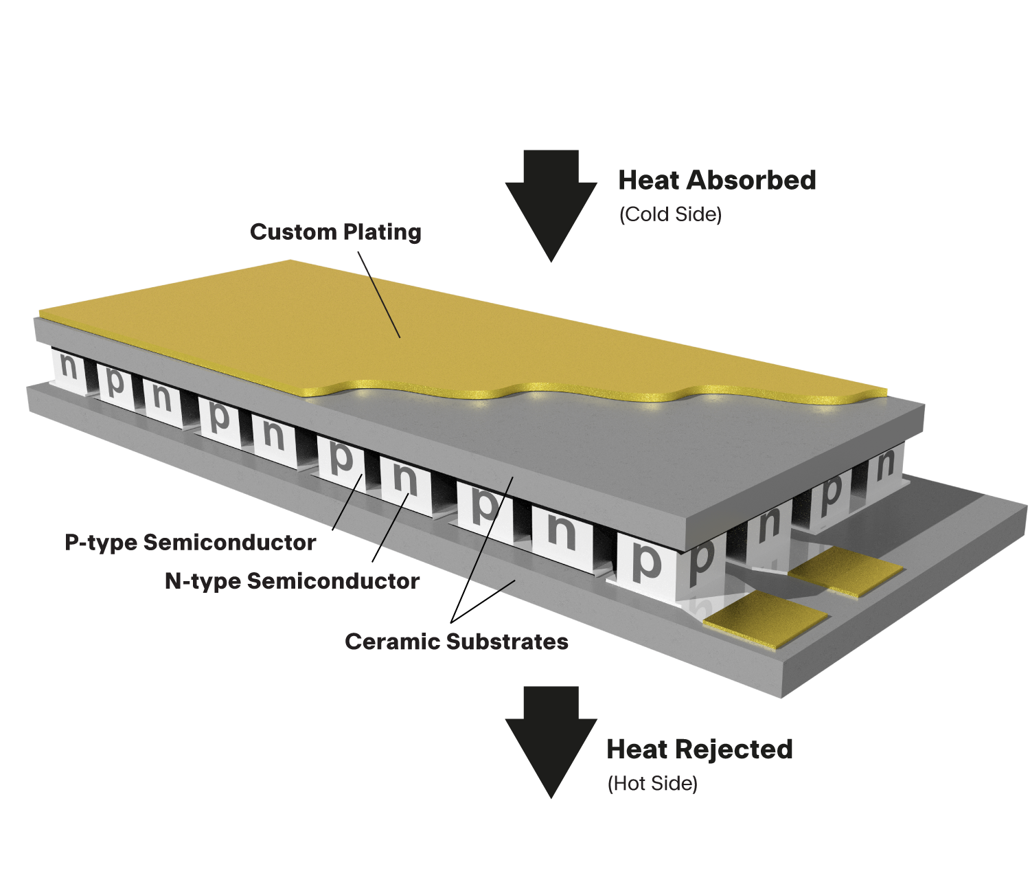 - Optimized TEC Design: application requirements need to be thoroughly understood at the desired operating point. The geometry factor and number of couples can be optimized to match heat removal requirements from the laser diode plus passive heat losses. Thermal resistances of the hot and cold side need to be accounted for as they will reduce temperature differential across the thermoelectric cooler quite a bit