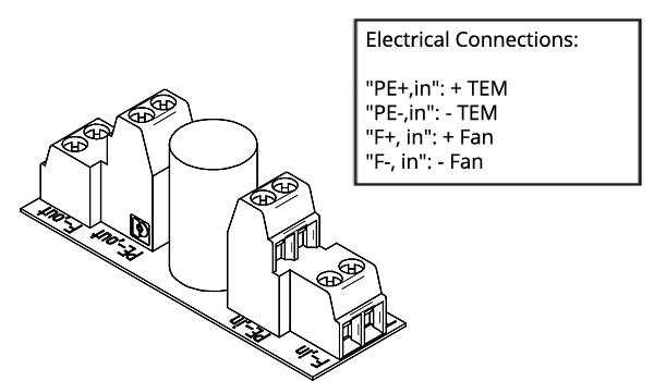 The DA-025-24-02 is a thermoelectric based air conditioner designed to temperature control small chambers used in analytical and medical diagnostic instruments. The unique design offers premium fans pushing air across-high density heat sinks to minimize the number of air flow paths required to operate. The design utilizes custom thermoelectric modules to maximize cooling capacity with a high coefficient of performance. Moisture resistant insulation is used to keep condensation from penetrating the thermoelectric module cavity. The unit operates on DC and is designed for an indoor lab use environment. It has a maximum Qc of 25 Watts when ΔT = 0 and a maximum ΔT of 42 °C at Qc = 0.